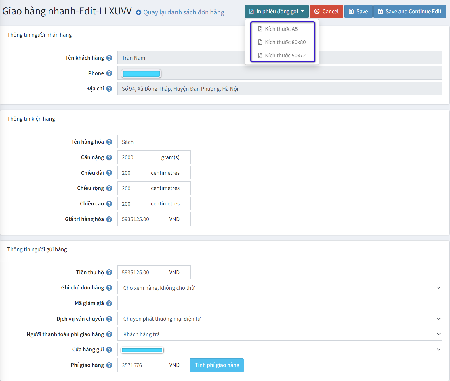 • Tạo vận đơn một cách nhanh chóng từ quản lý đơn hàng thông qua API của Giao Hàng Nhanh. Bạn có thể theo dõi trạng thái của các đơn hàng và cập nhật thông tin cho khách hàng một cách dễ dàng.